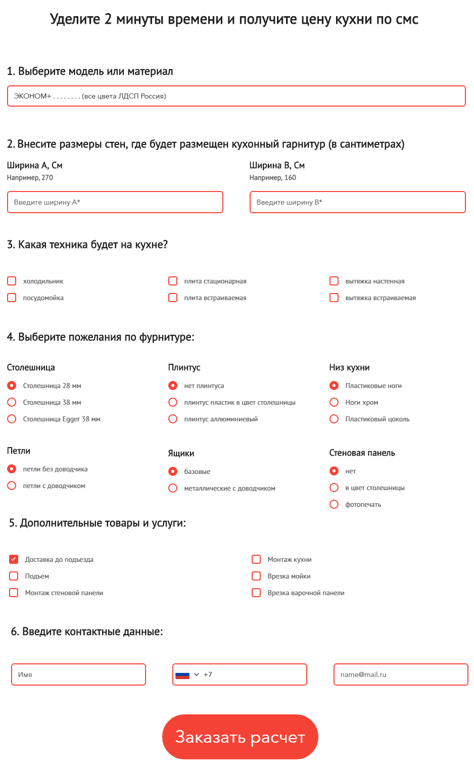 Не секрет, что выбирая подрядчика, люди обычно держат открытыми сайты нескольких компаний. Чтобы не потерять потенциального клиента, многие сайты предлагают вариант “вбейте данные в калькулятор, мы рассчитаем и перезвоним”. Делается это не только ради получения почты и телефона: при сложном заказе человек легко может допустить ошибку, а если при пересчете специалистом итоговая цена не сойдется с тем, что клиент насчитал на сайте — это негатив и потерянный заказ.