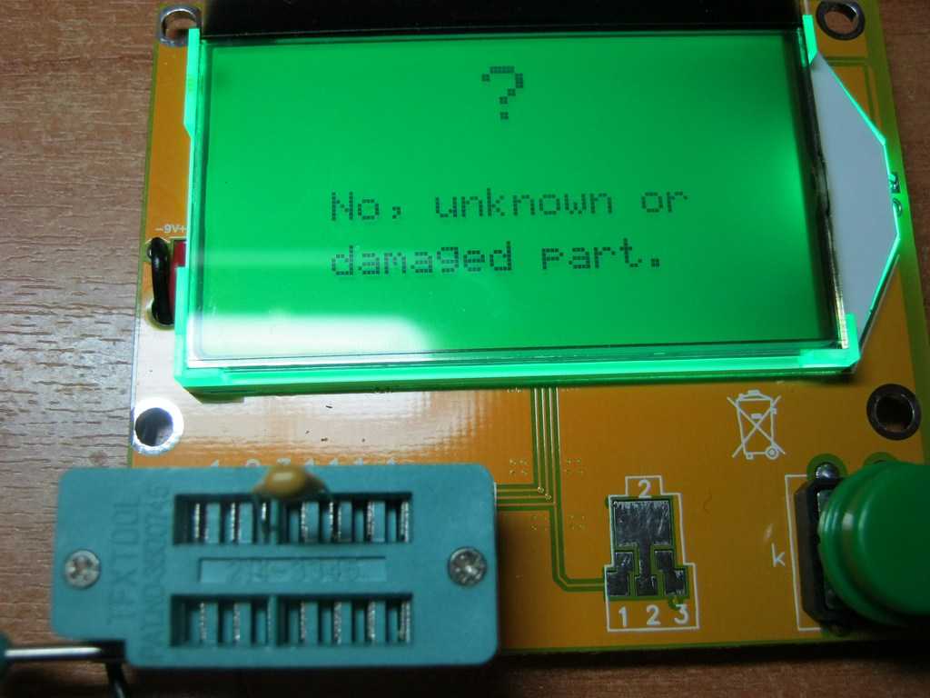 - Если тестируемый компонент сгорел с КЗ всех трех ножек, то в этом случае тестер перейдет в режим самотестирования.