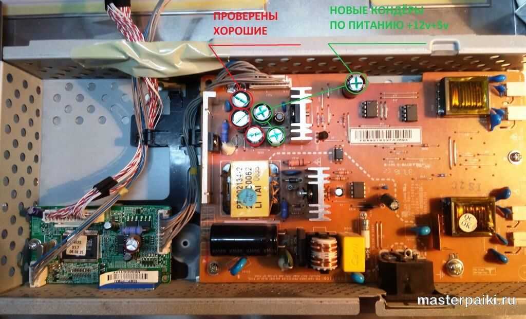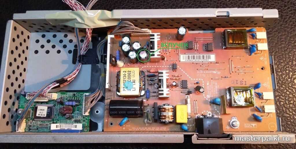 Если монитор не подвергался механическим повреждениям, таким как удары, падения, попадания влаги или насекомых, то часто это проблема старения компонентов блока питания, в частности — электролитические конденсаторы.